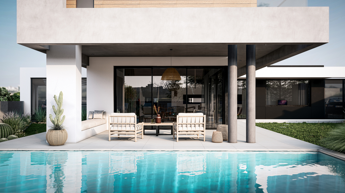 Photorealistic architectural visualizations of modern residence in Cyprus.